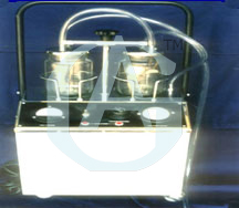 Mobile, mounted on four castors, fitted with 1/4 HP electric motor, vacuum control knob, vacuum gauge, collecting jars fitted with self sealing rubber bungs and overflow guard with filter to prevent moisture in the pump.