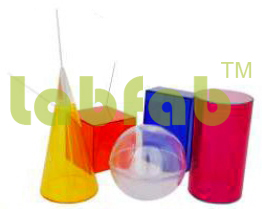These Transparent solid figures are big in size & can be used to demonstration whole class. This set is cinsist with cube (whole on two vertex , to insert wire to show diagonals of 3D figures ), cuboid , cone (whole on top to insert wire to show difference between slant height and 2 hemisphere . Duly packed in rixen box.