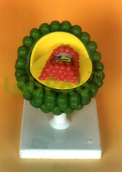 AIDS VIRUS HIV virus model is enlarged millions of times, shows the outer lipid membrane with protein structures and the internal nucleus which contains the viral hereditary matter [RNA]. The nucleus is removable and condoms can be put underneath to provide a message regarding measures to be taken for protecting against HIV infections.Supplied without condoms, on stand,with key card