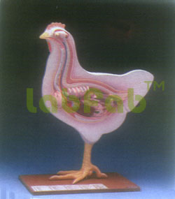 BIRD DISSECTION 6003070 Natural size,Domestic hen, the right side shows the feathers and the other side all the internal organs, on base with key card