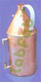 Copper, cylinderical vessel 280 x 115 mm overall height x diameter, capacity 1.5 liters, neck 23 mm dia. With riffled side tube 9.5 mm maximum outer dia and water gauge.