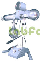Vacuum Rotary Evaporator With Quick Action Jack (Buchi Type) (New improved model with variable system and D.C. MOTOR but to work on 220 volt A.C.) The apparatus consists of an Evaporating Flask rotated by non-sparking electric motor in heating water bath. The drive unit is clamped on V SHAPED heavy duty stand. The introduction tube permits continuous feed of the liquids into evaporating flask and also distillation under controlled atmosphere.The evaporating flasks is pear shaped to give a large surface area for evaporation, clamped to a glass duct which goes through the drive unit and produced into the condenser. The top condenser is fitted with B-19 joint through which introduction tube is inserted. The condenser spherical joint S-35 at the bottom of the condenser to receiver flasks cap; 1 Litre of Corning Glass with Ball point socket. The Condenser is Double Coil for Cooling Water and suitable for 220 volts, 50 cycles A/C Complete unit is fitted on V shape Heavy Duty Stand with Quick Jack Action CAP. OF FLASK (a) 1 litre (b) 2 litre (c) 3 litre (d) 5 litre (e) 10 litre (A) Micro attachment for 1 litre cap. BUCHI Apparatus Water Bath: Double Wall, Thermostatically Controlled: (for above vacuum Rotary Evaporator) Round Shape, Double Wall: Outer body made of Mild Steel finished in durable white stove enaml. Inside made of Stainless Steel. Thermostatically Control. Complete with wire and plug to work on 220 volts A/C